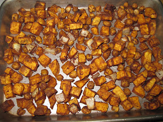 So let's start with dinner first. I was searching some new blogs last night and found the recipe that I used at Oh She Glows. Cinnamon Sweet Potato Chickpea Salad. I added a few more spices and such to my dish to make it my own.